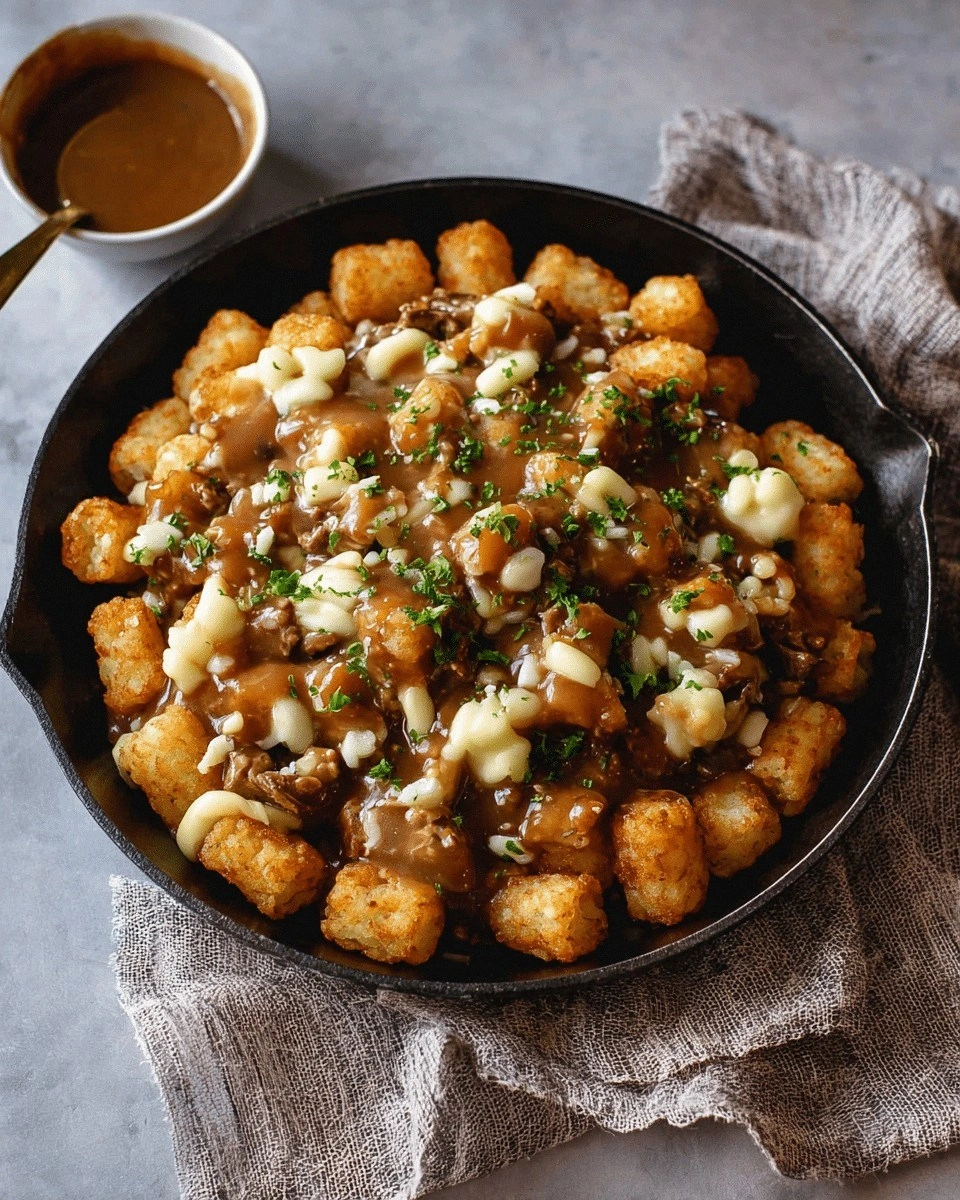 I was standing in a dimly lit basement kitchen, the fluorescent lights flickering like a tired disco ball, when the disaster unfolded. A bag of frozen tater tots had slipped from my hands, splattering onto the floor in a glittering, soggy mess. I stared at the chaos, then at the empty bowl of gravy that had been waiting patiently on the counter, and a mischievous grin spread across my face. I whispered to the kitchen: “This is going to be legendary.” The moment felt like a culinary dare from a friend who had never tasted anything like it. I grabbed the tater tots, tossed them into a hot pan, and watched them sizzle with a sound that could only be described as a promise of crunch. The aroma that rose from the skillet was a heady blend of buttery crispness and savory heat, almost like a secret handshake between comfort food and indulgence. The sight of the golden edges popping was a visual cue that the universe was aligning for greatness. I was about to create something that would redefine the term “treat.” And I can’t wait to show you how to do it.